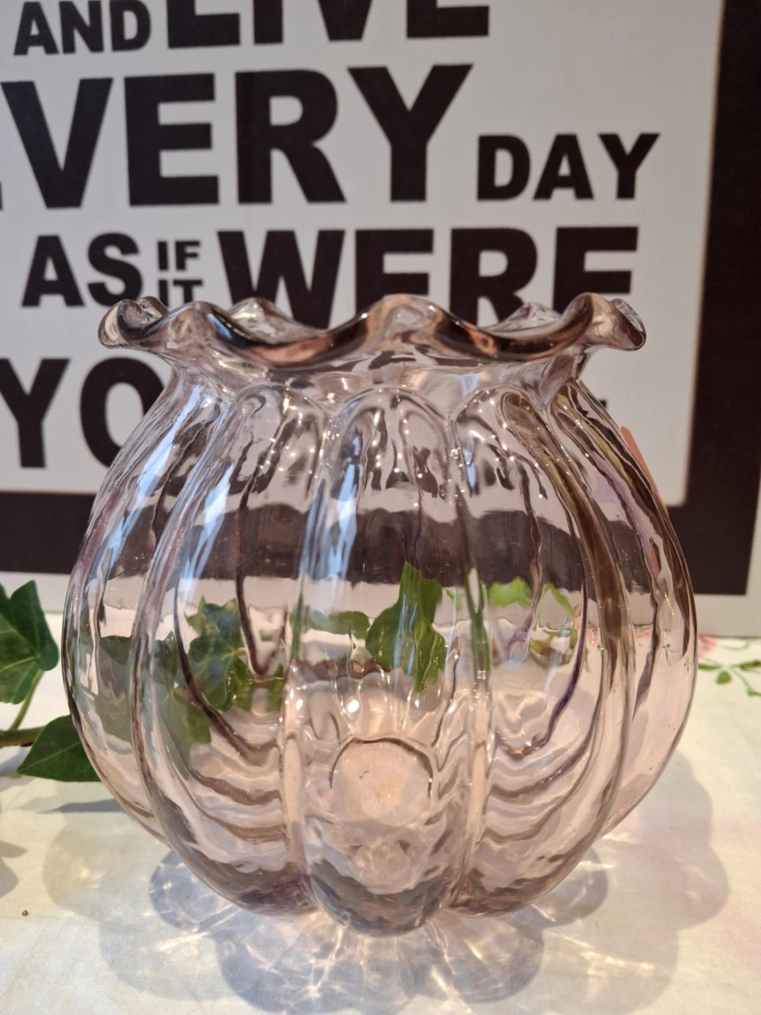 • Smukt riflet glas, der leger med lyset