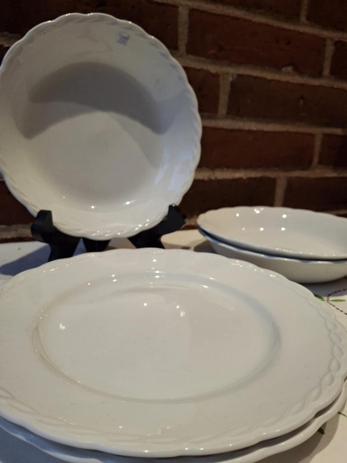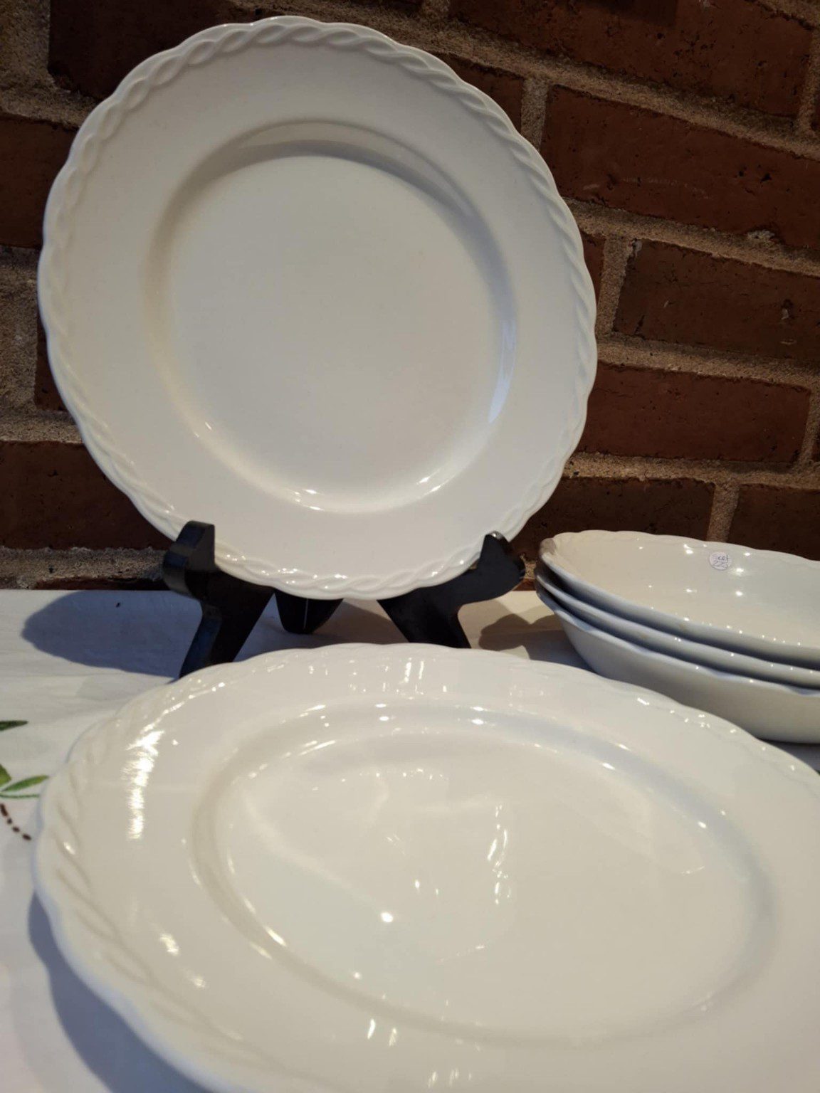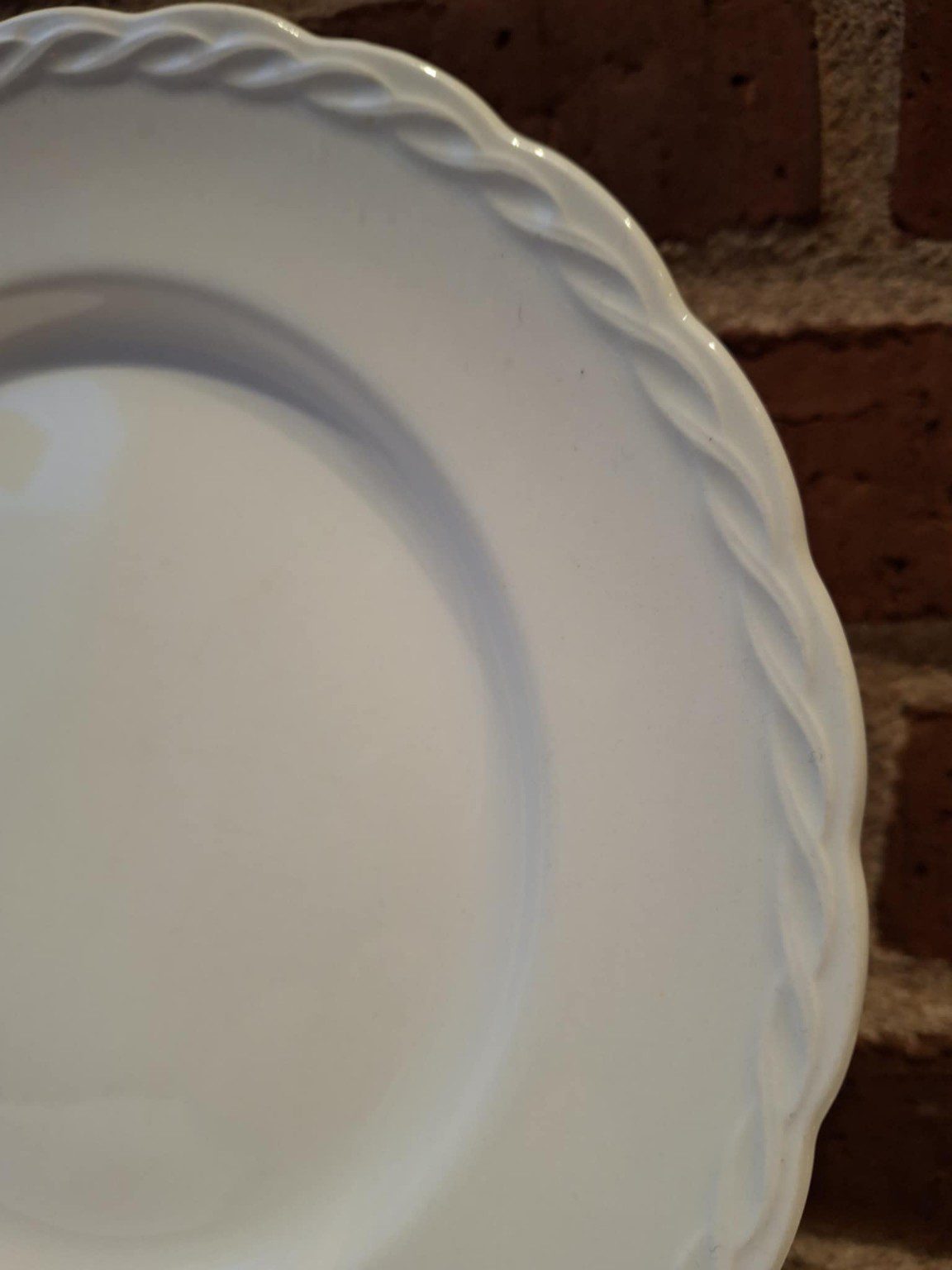 Med deres bløde, hvide glasur og en let flettet kant i relief har de den der diskrete elegance, som passer til alt – fra rugbrødsmadder til søndagssteg.