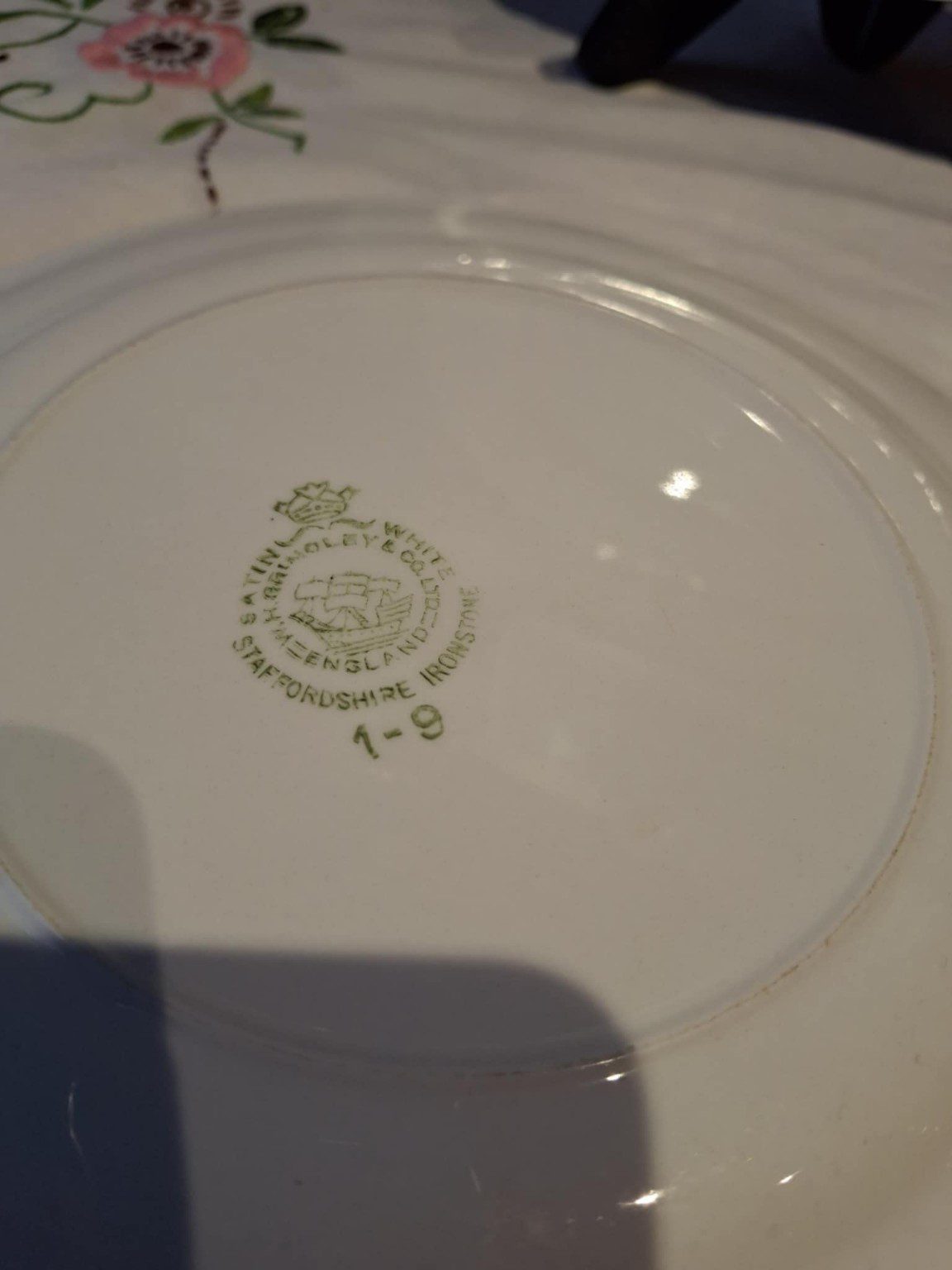 Det er tallerkener med historie – lavet i Staffordshire i 1940’erne–50’erne, hvor håndværket stadig blev holdt i hævd.
