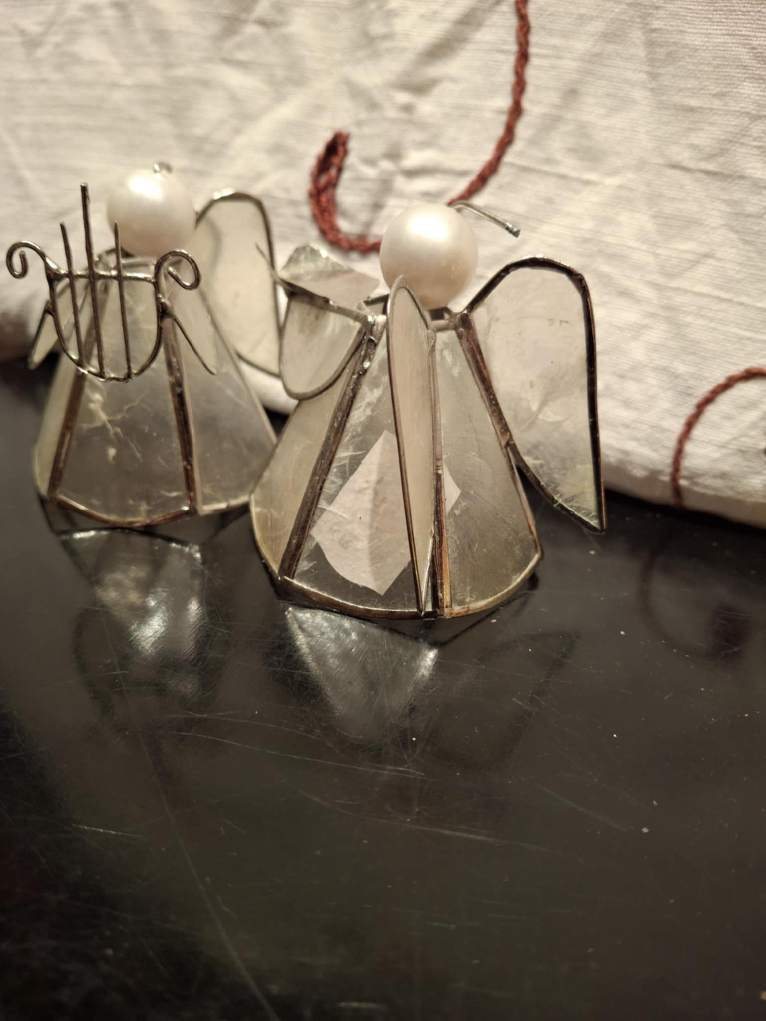 Glasset har naturlige variationer og små spor af tid – præcis som det skal være. Det giver hver engel sit eget udtryk og gør dem levende, især når lyset tænde
