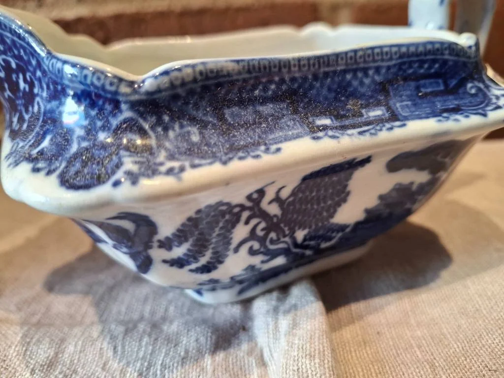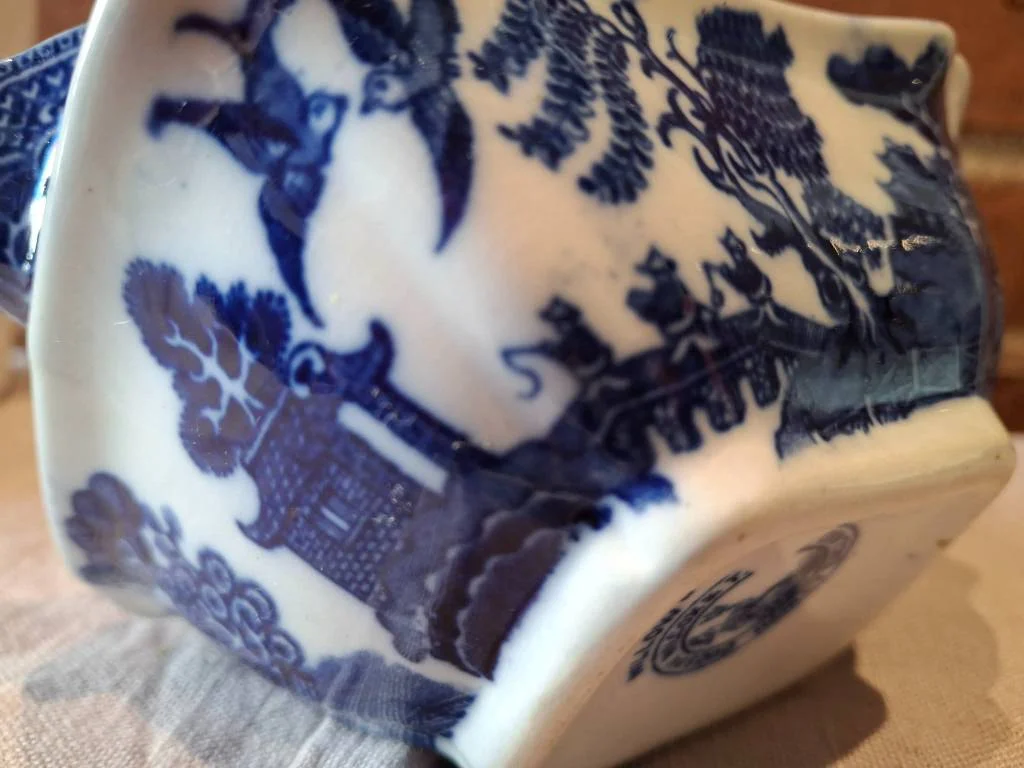 Elegant blå og hvid kande med det klassiske Willow-mønster. Et charmerende stykke, der bringer hygge til hjemmet 🌿✨