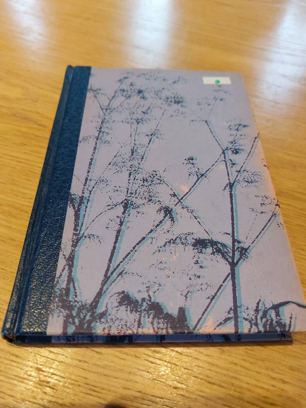 Bogen præsenterer sig med et smukt, mønstret omslag i grålilla og mørkeblå nuancer, der forestiller et finurligt træmønster. Ryggen er i en dybblå farve og prydes af forfatterens navn og titlen i elegante guldbogstaver, der vidner om en tid, hvor bøger blev lavet med øje for detaljen. Som billederne viser, er bogen godt bevaret med en fin, let patina efter mange års trofast tjeneste – lige som en god genbrugsbog skal være.