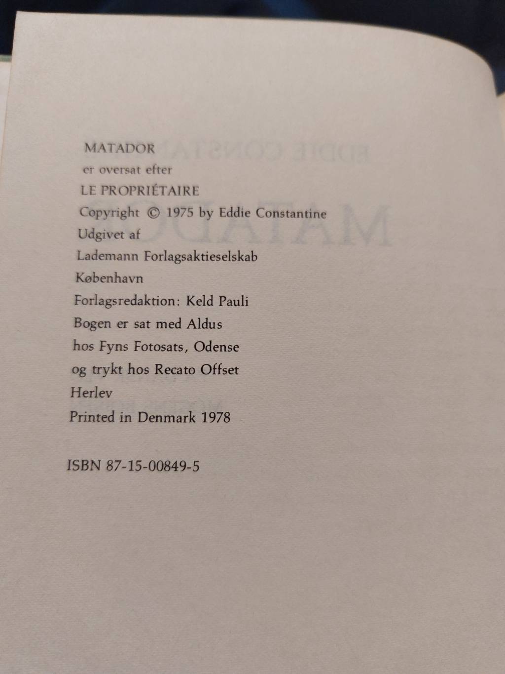 Giv dit hjem en unik stemning med Eddie Constantines klassiker, ‘Matador’, fra 1978. Denne bog er ikke bare et stykke litteratur – det er en tidskapsel, der bringer minder om svundne tider. Perfekt til dig, der elsker bøger med historie og karakter.