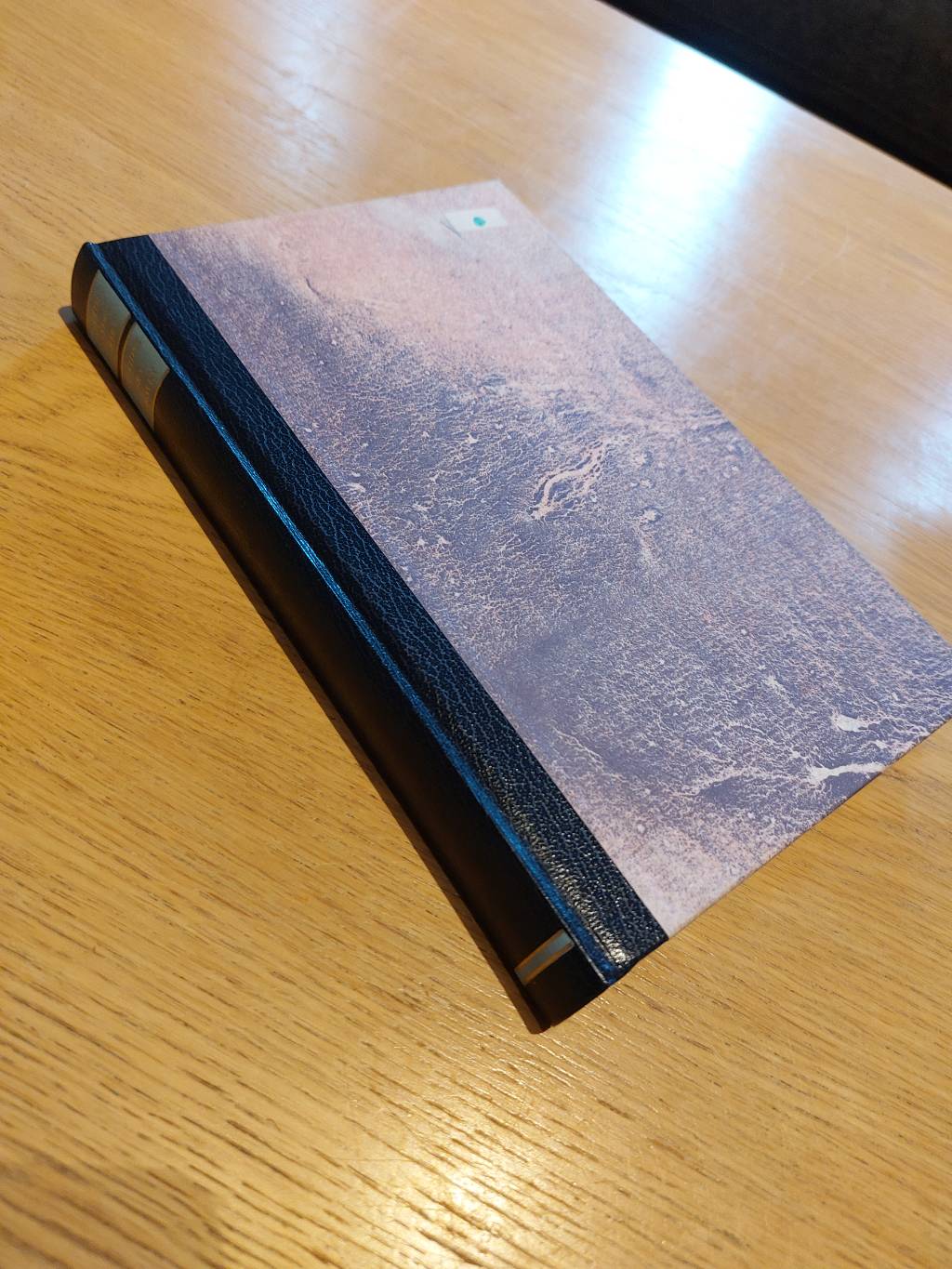Bogen har en solid ryg med sort lædertekstur og gyldne bogstaver, som giver et eksklusivt look. Indbindingen er holdbar og perfekt til et hjem, hvor bøger både læses og udstilles som et dekorativt element.