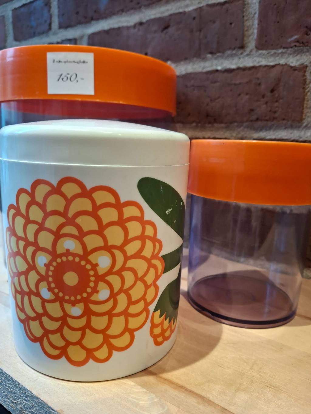 Farverig opbevaringskrukke fra Lønborg Denmark med et skønt retro blomstermønster. Perfekt til køkkenhygge 🌸✨