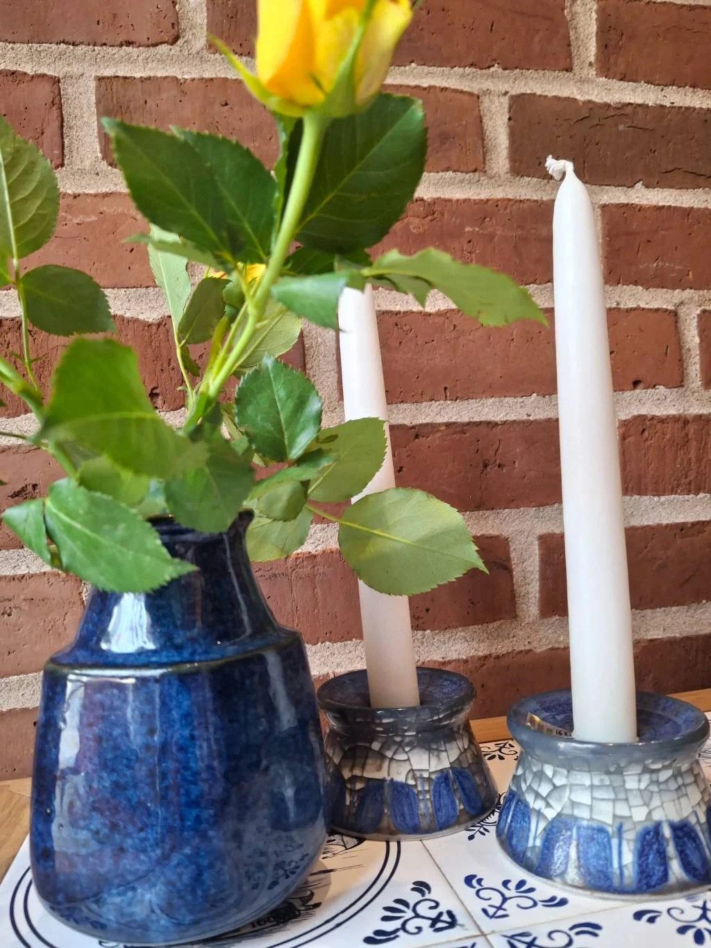 Den lille chip i toppen vidner om vasens historie og tilføjer en charmerende patina. Dette er ikke blot en vase, men et stykke keramik, der bærer på en fortælling – perfekt til dig, der elsker genstande med sjæl og karakter 💕. Fyld den med friske blomster, eller lad den stå som et dekorativt element i stuen eller på hylden.
