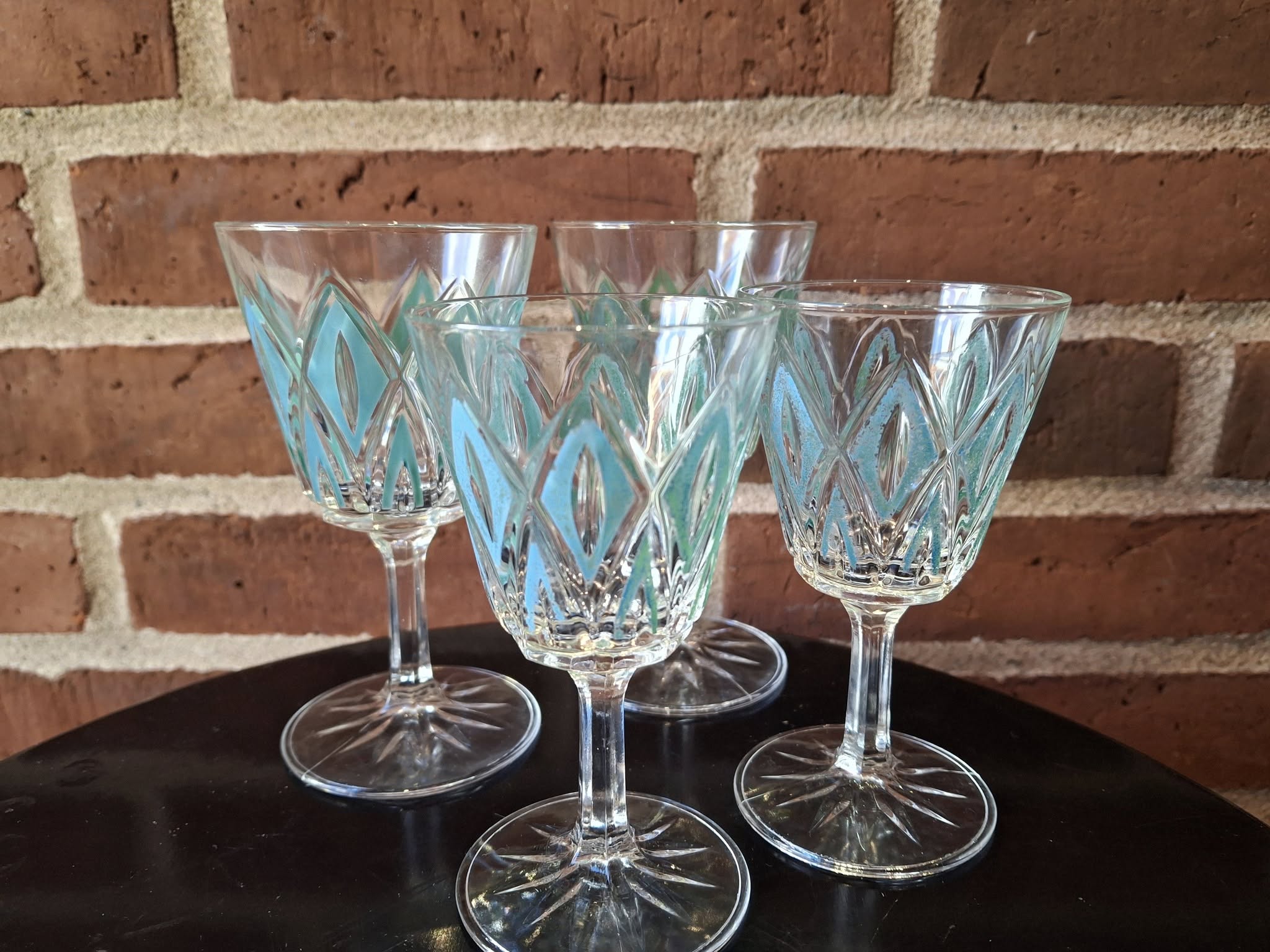 Hvert glas sælges enkeltvis, og alle bærer den fineste lette patina efter mange års brug – præcis den slags sjæl og varme, vi elsker hos VillaSnak.dk. Farven er en anelse falmet, men det er netop det, der gør dem så charmerende – små vidnesbyrd om mange hyggelige skåle gennem årene.