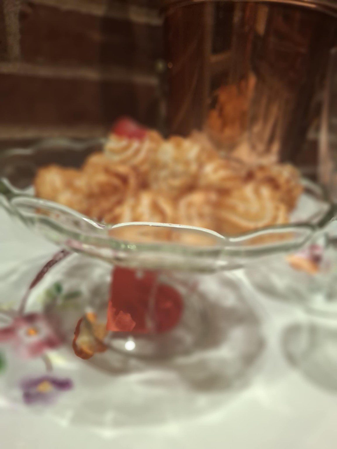 Sådan et opsatsfad i glas er én af dem – for pludselig ser selv en lille håndfuld småkager ud som en hel invitation til hygge.