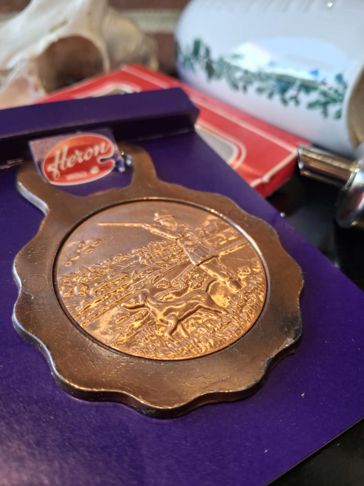 Den er udført i flot, varm bronze og sidder stadig på sit originale Heron Denmark-kort ✨