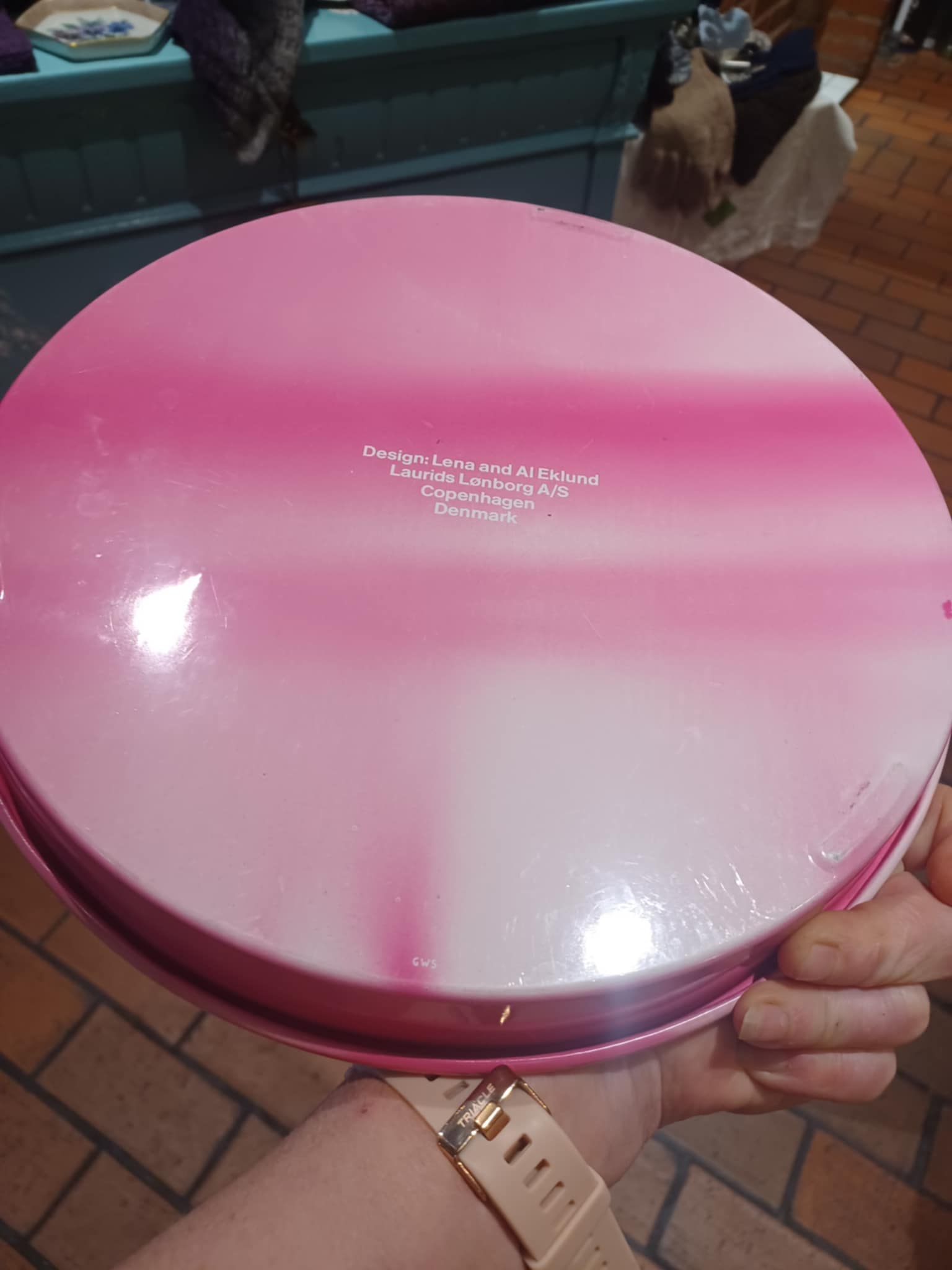 Det har lette overfladespor, som man ofte ser på vintage/retro fade – men fremstår stadig rigtig fint og dekorativt.