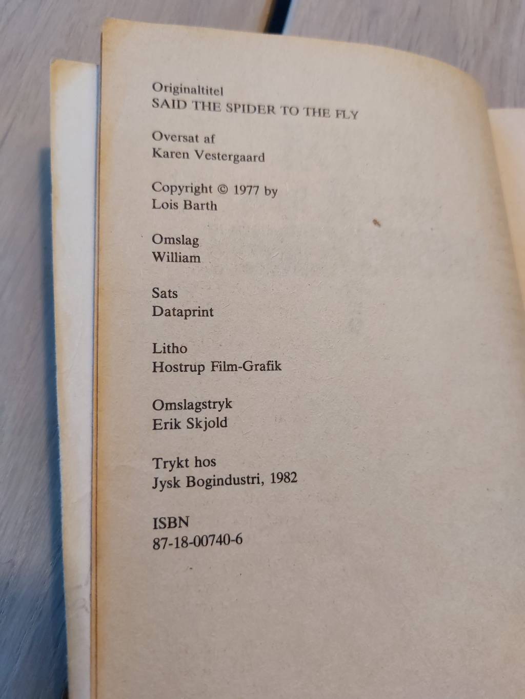 Har du lyst til at lade tankerne flyve og fordybe dig i et godt, gammeldags mysterium? Så er ‘Hvem er morderen?’ af Lois Barth det perfekte valg. Denne krimi, med sin originale titel ‘Said the Spider to the Fly’, blev oversat af Karen Vestergaard og udgivet i Danmark i 1977. Det ydre omslag, designet af William, viser en stemningsfuld illustration af flere ansigter, der nysgerrigt ser ud mod læseren – det perfekte setup til en nervepirrende fortælling. Dens tryk fra Jysk Bogindustri i 1982 vidner om dens rejse gennem årtierne og gør den til et ægte samlerobjekt for dem, der sætter pris på bøger med historie.