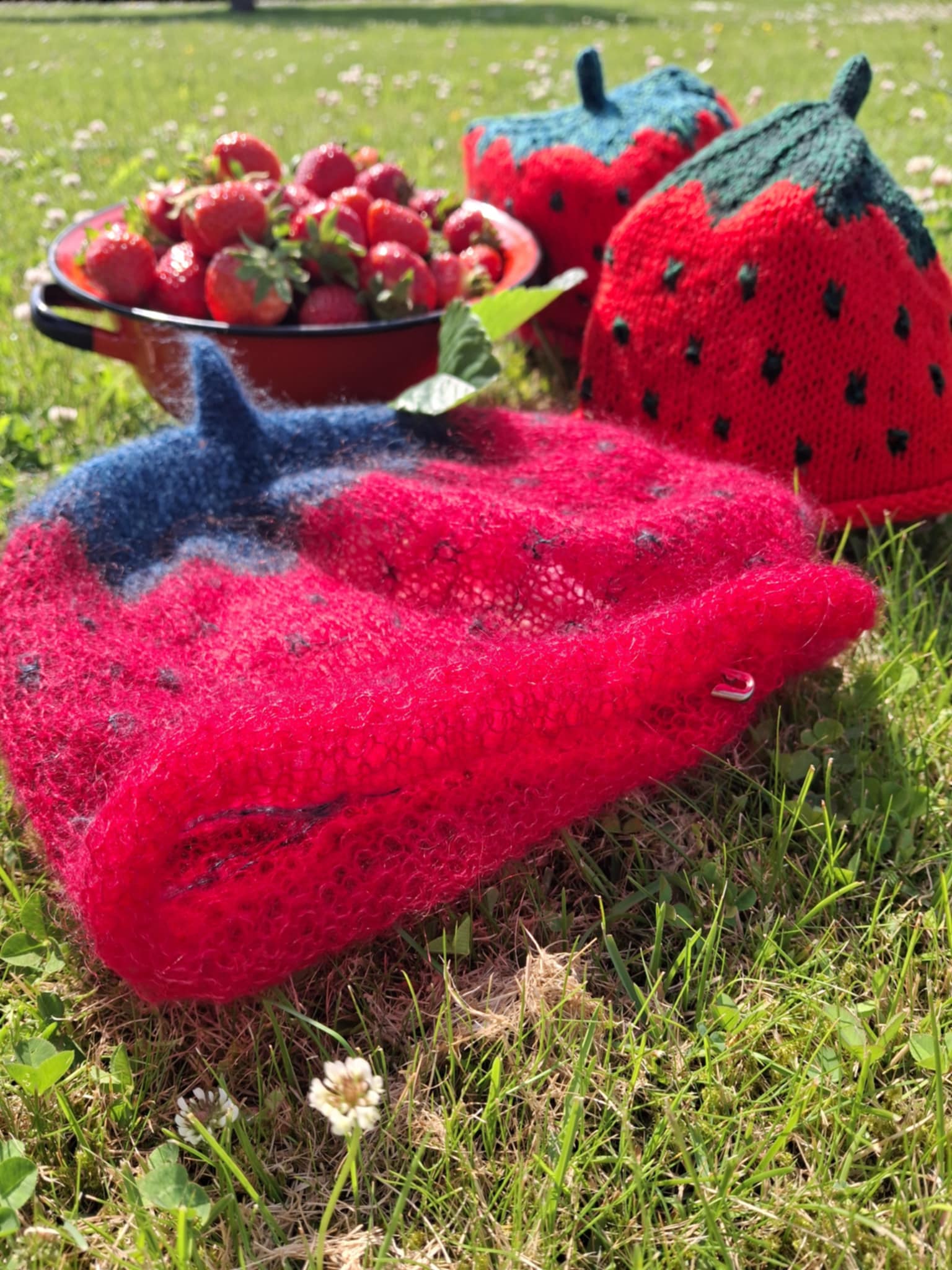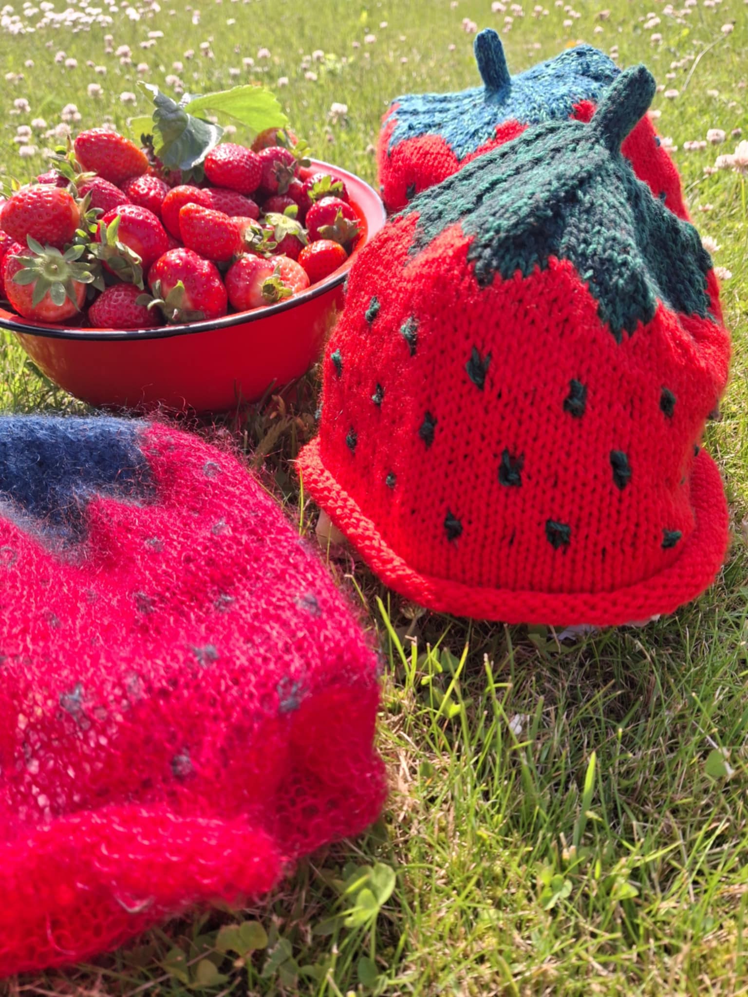 Jordbær huer, håndstrikket …