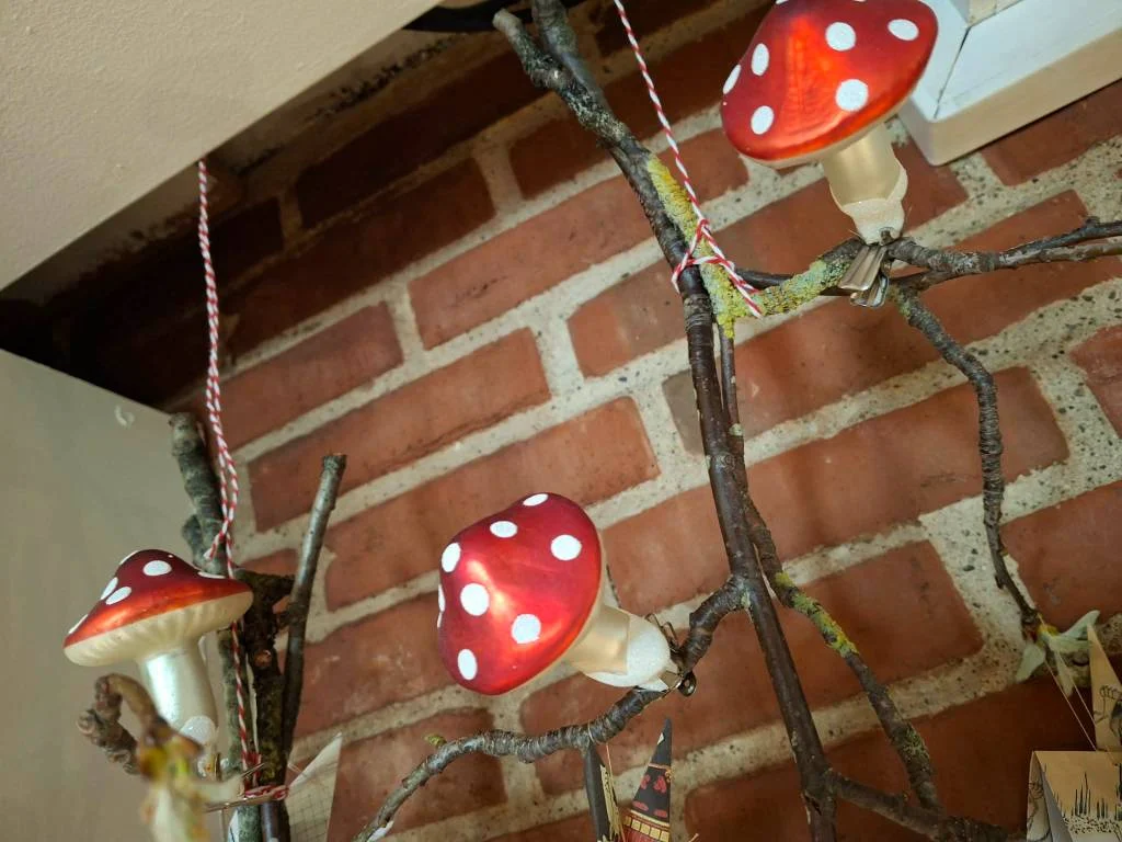 Disse fine glasfluesvampe er et nostalgisk og charmerende indslag til din julepynt. Med deres røde farve og hvide prikker bringer de minder om gamle juletraditioner og en hyggelig tid med familien. Svampene kan hænges på grene, juletræet eller som del af en dekoration, der emmer af eventyrlig stemning. ✨