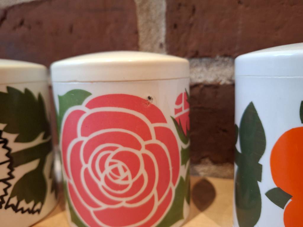 Charmerende lille dåse fra Lønborg Denmark med en smuk lyserød blomst. Perfekt til at skabe hygge i køkkenet 🌸✨.