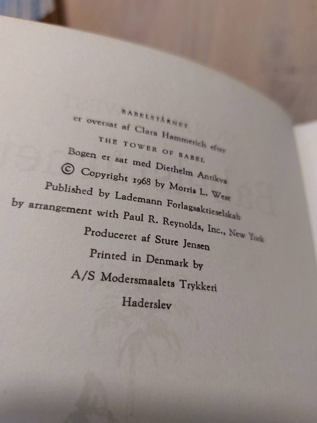 Her hos VillaSnak elsker vi en god bog med historie, og denne udgave af Morris L. Wests Babelstårnet er ingen undtagelse. Bogen er trykt i 1968 af A/S Modersmaalets Trykkeri i Haderslev, og det er tydeligt, at den har mange år på bagen – på den gode måde, selvfølgelig! ✨