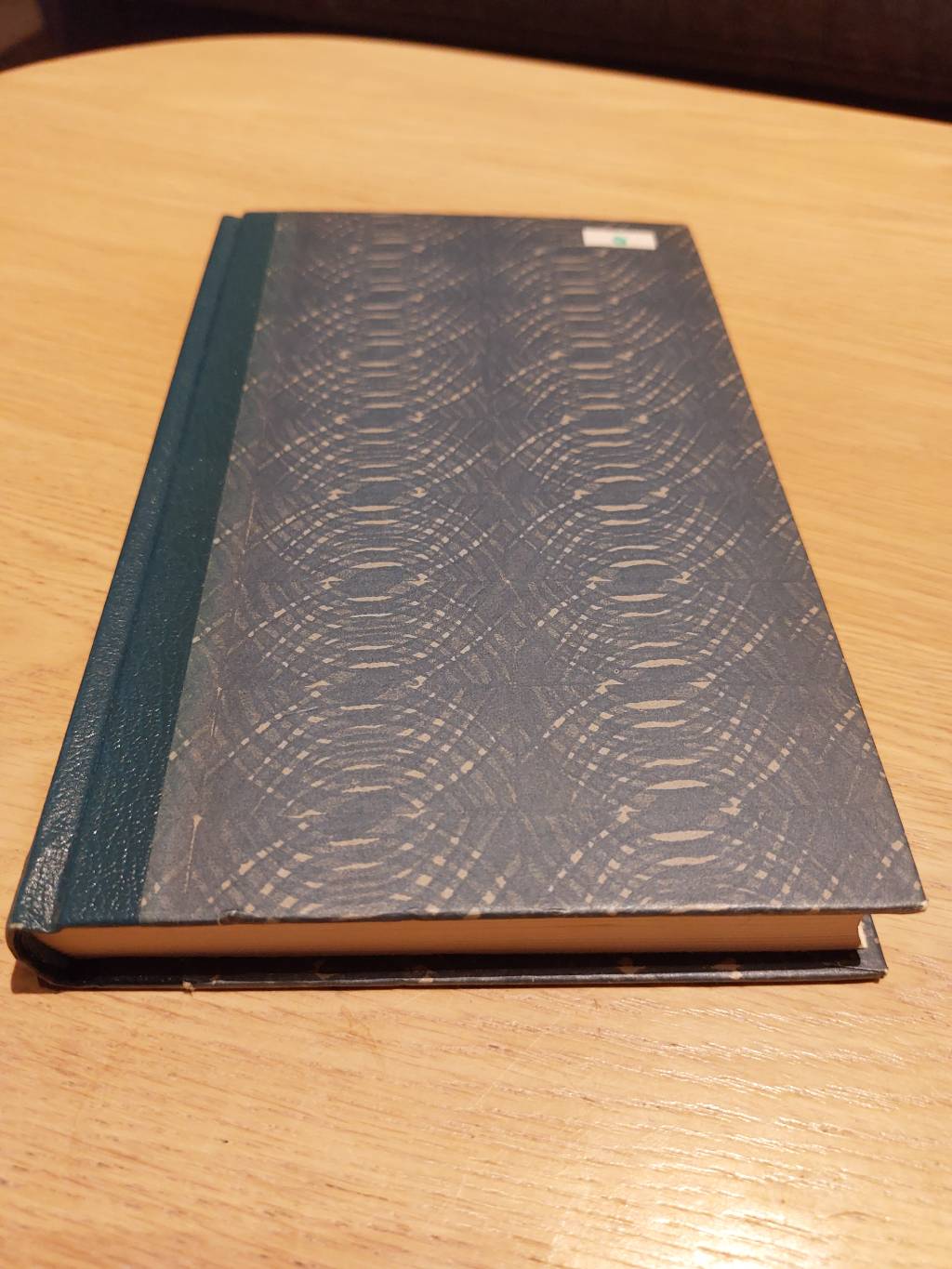 Bogen har et solidt mørkeblåt rygbind med guldtryk, der udstråler klassisk elegance. Omslaget er dekoreret med et subtilt mønster, der giver den et unikt og nostalgisk præg. Med lette brugsspor, der vidner om dens rejse gennem tiden, tilføjer denne bog personlighed til enhver bogreol.