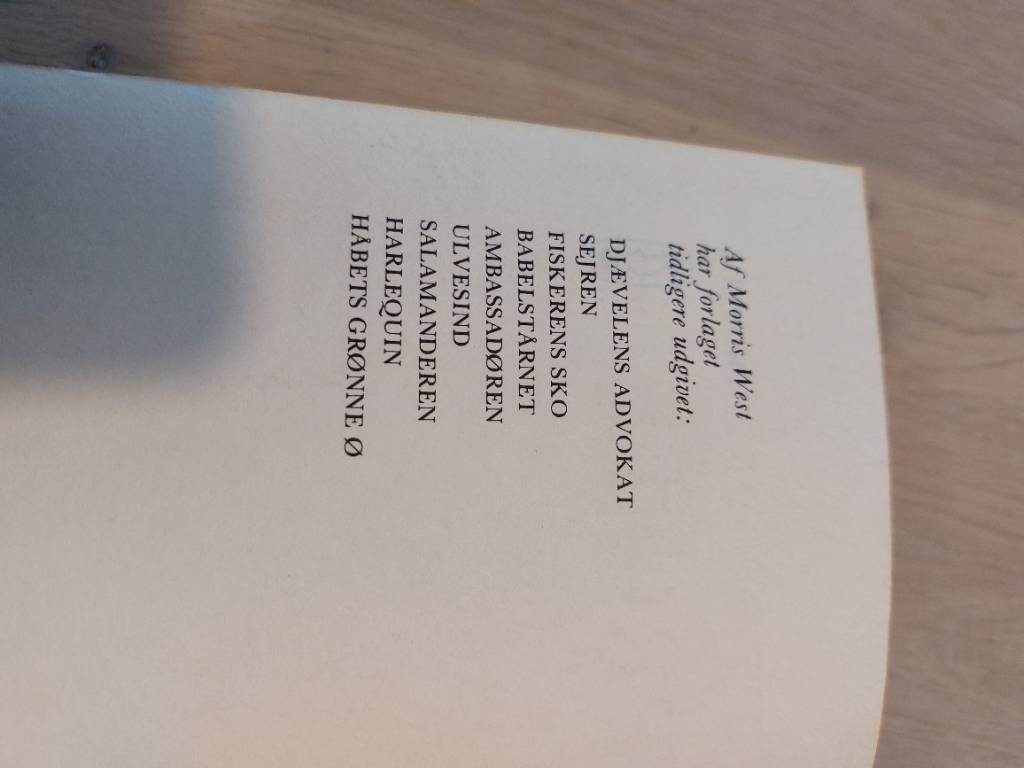 Forestil dig hyggen ved at bladre i de let gullige sider og lade dig rive med af Morris Wests fortælling. Denne bog kan nemt blive en del af din samling af brugte bøger, der skaber den helt rigtige “mormor-hygge” – en bog, der venter på at få et nyt hjem og nye øjne at bage i. ❤️