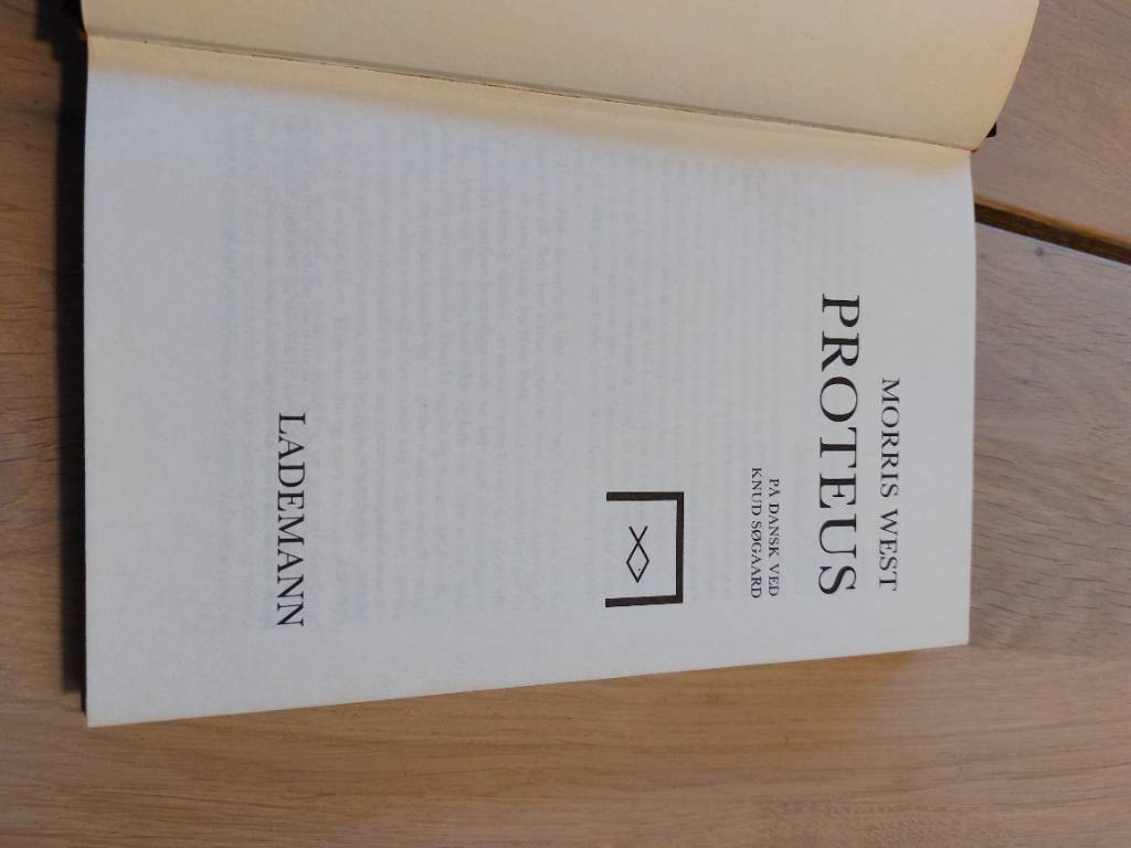 Denne udgave af Morris Wests “Proteus” er fra Lademann og har en fin, lidt slidt charme, der fortæller historier fra sit tidligere liv.