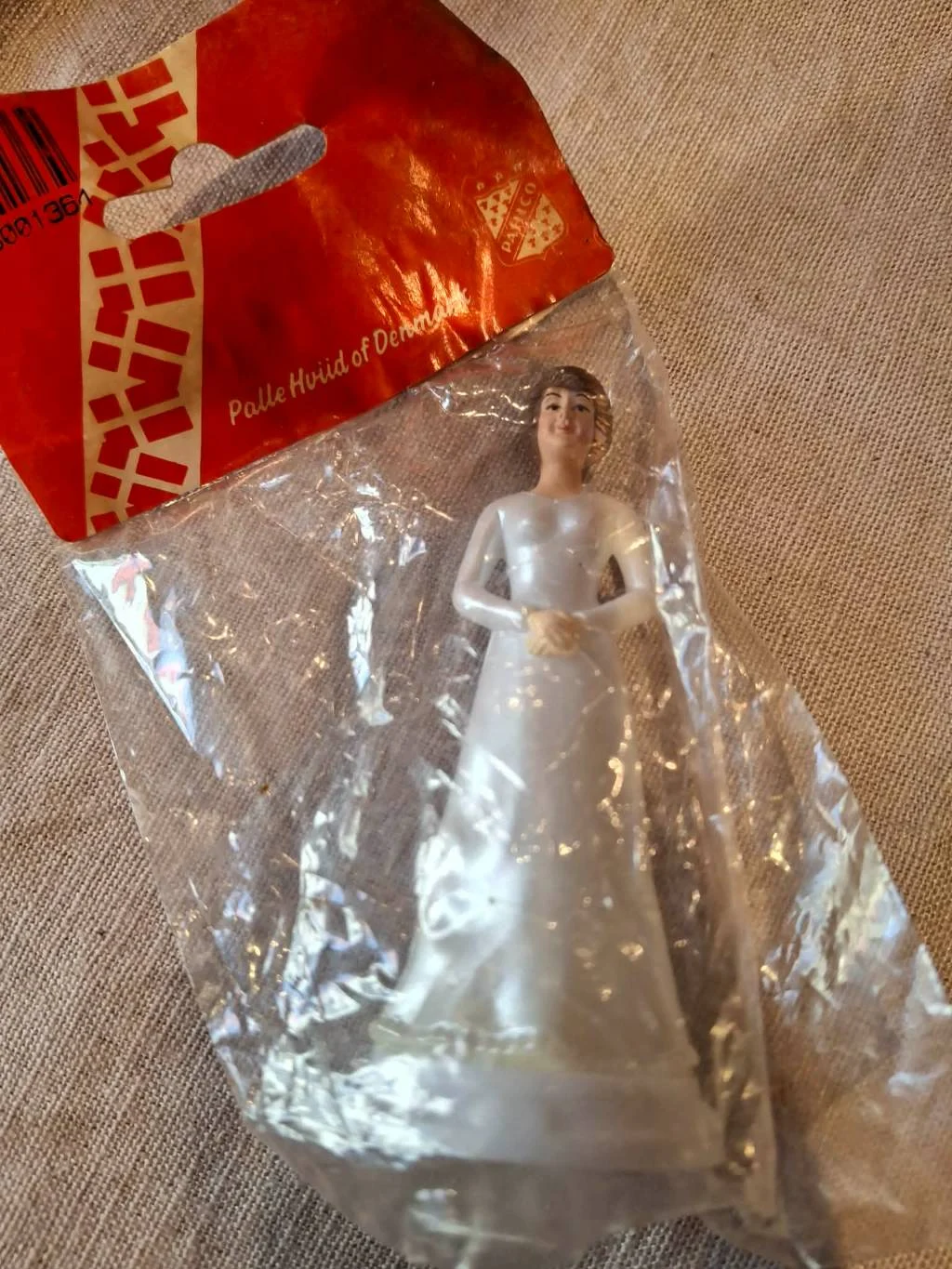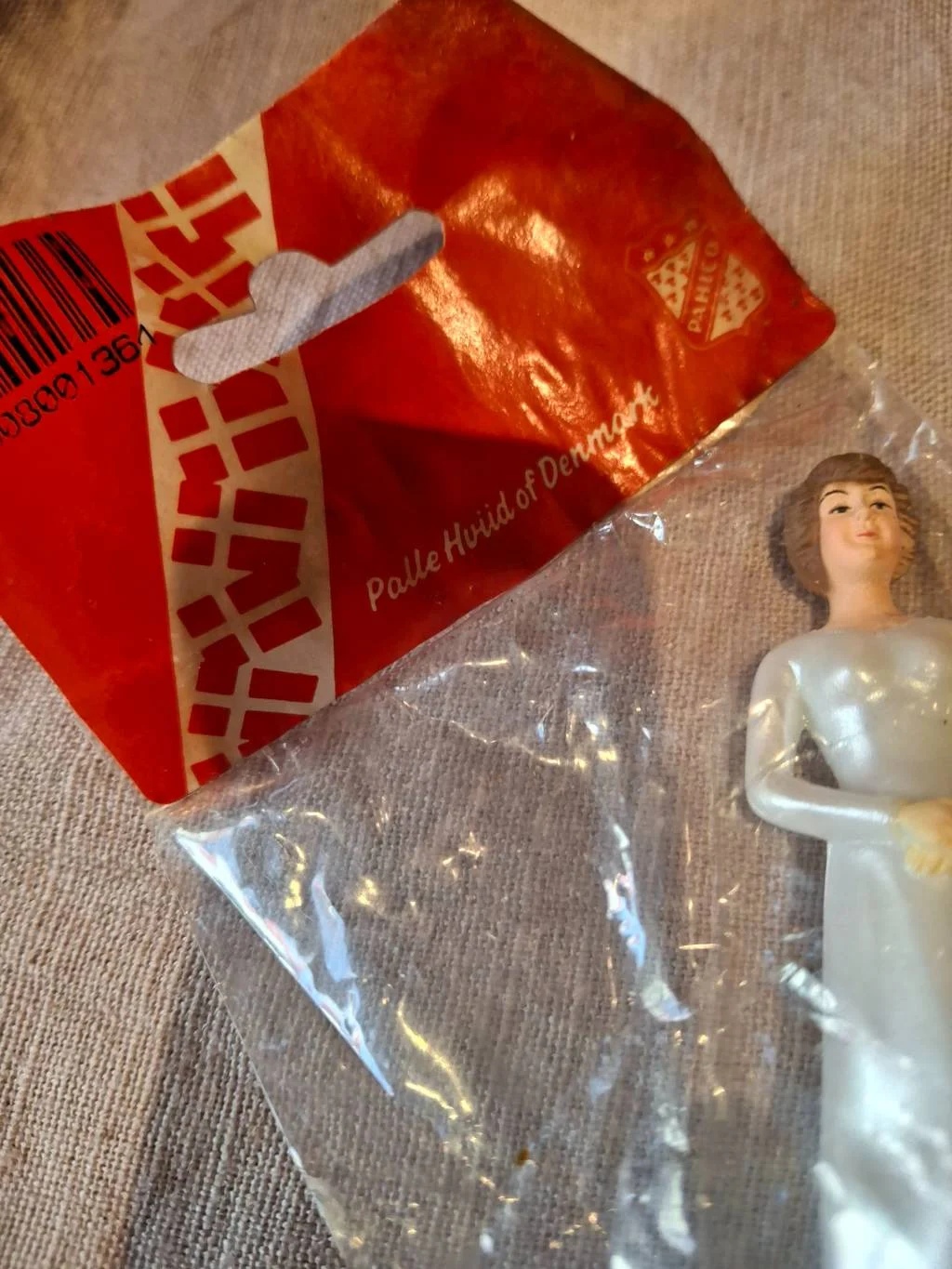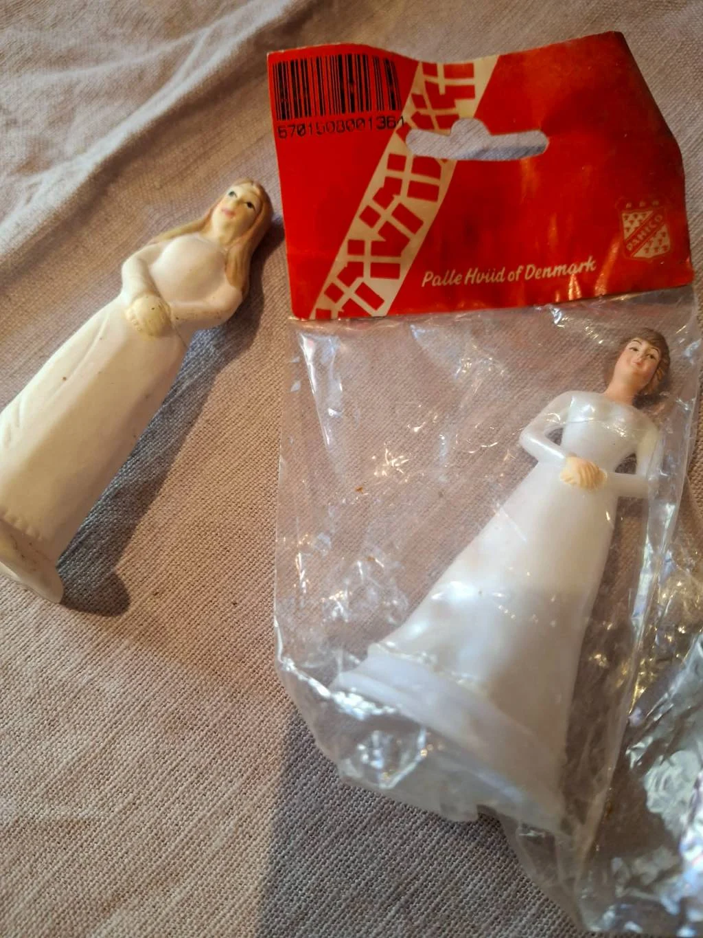 En skøn lille plastikfigur af en pige i hvid konfirmationskjole. Perfekt til pynt ved festlige lejligheder eller som et nostalgisk minde. 🌸✨