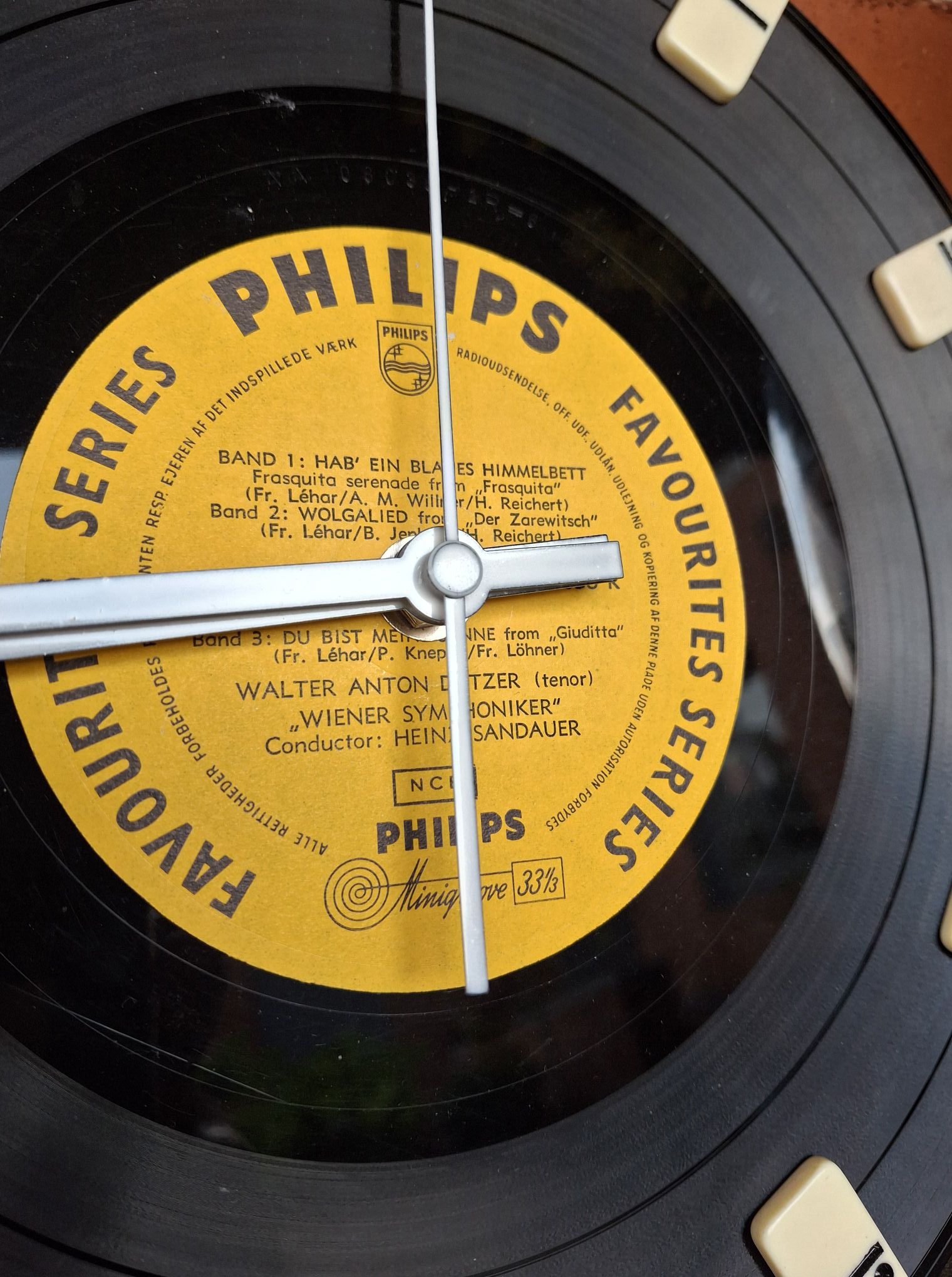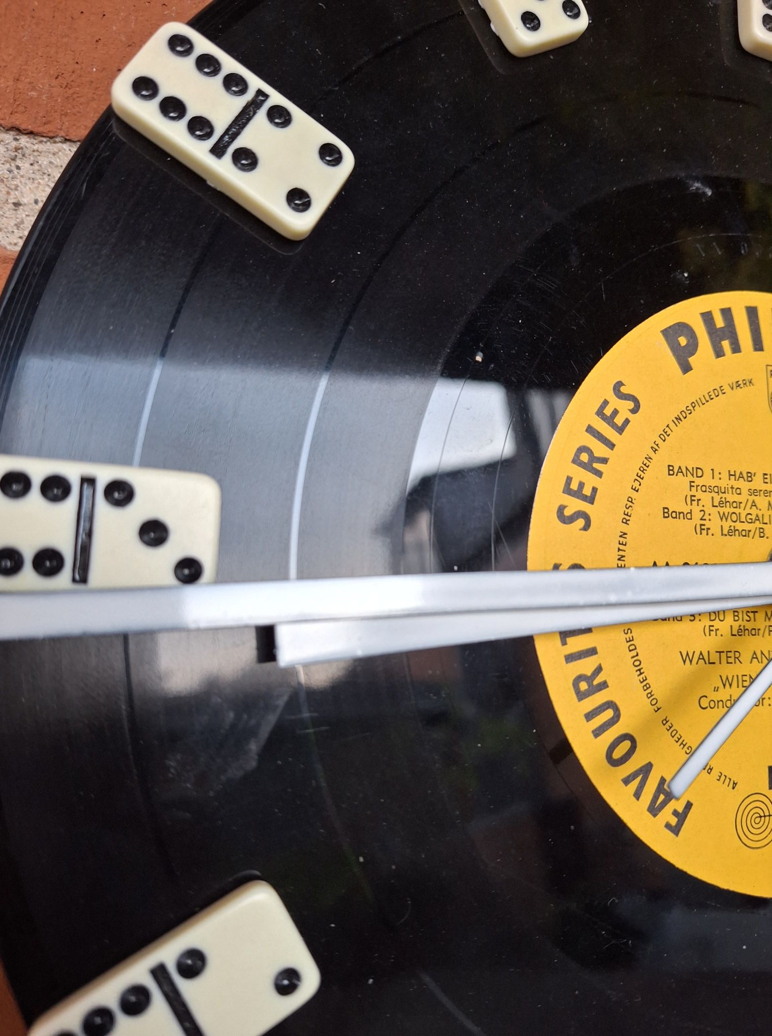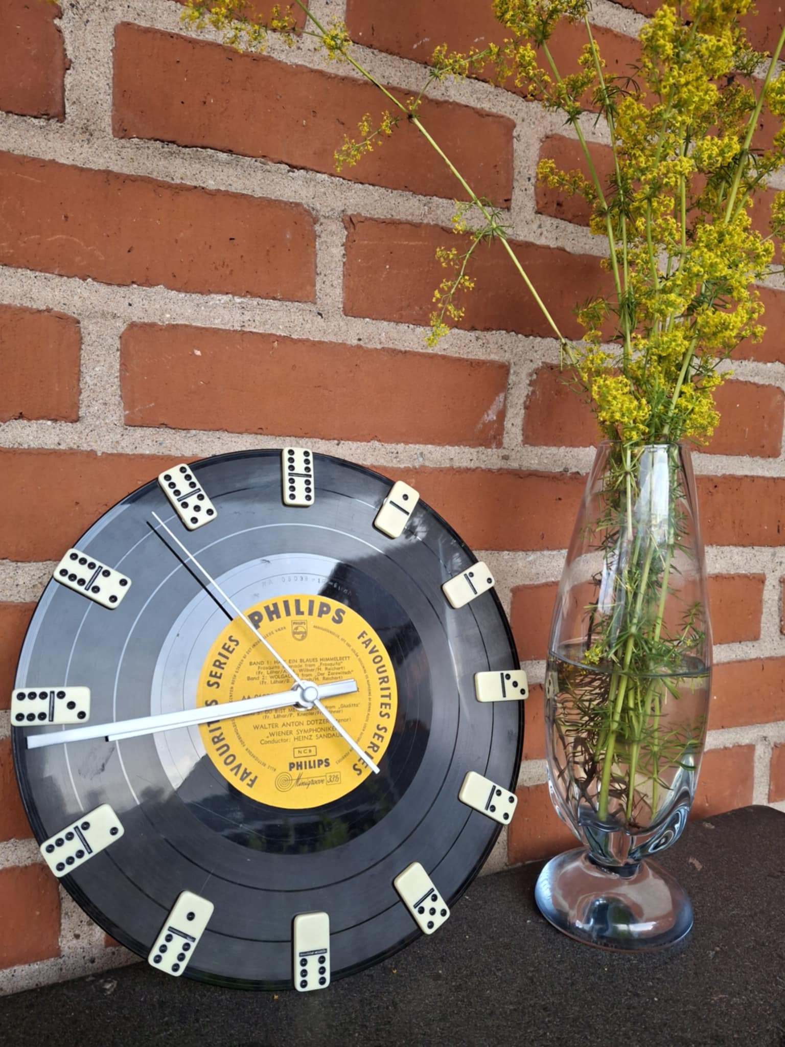 Et ur med både personlighed og historie – dette unikke vægur er håndlavet af en original LP-plade fra Philips’ “Favourites Series” og prydet med små dominobrikker som time-markeringer. Hver detalje er udvalgt med kærlighed til genbrug, nostalgi og det legende udtryk, der gør det til den perfekte gave til musikelskeren, vintage-entusiasten – eller bare én, der elsker noget anderledes.