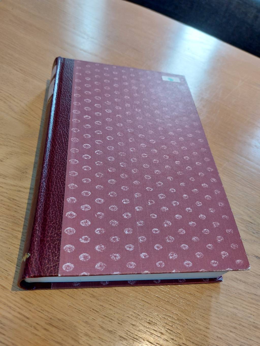 Bogen er indbundet i smukt rødt omslag med fine gulddetaljer på ryggen, der udstråler klassisk elegance. Den diskrete patina giver bogen ekstra charme og vidner om dens historie.