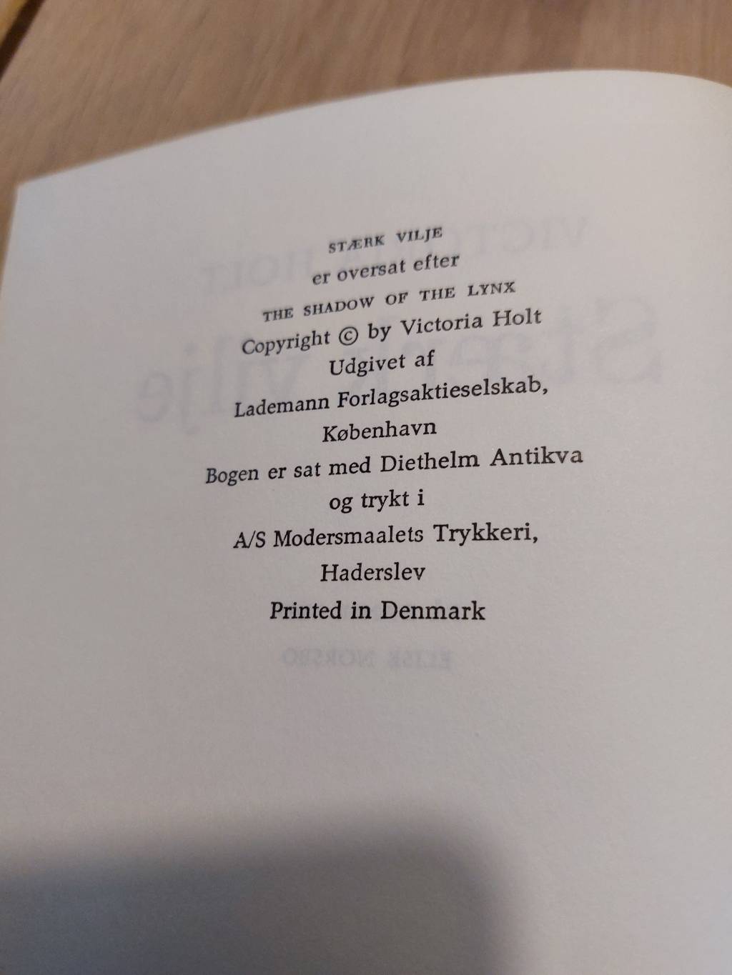 Når vi åbner bogen, finder vi ud af, at den er udgivet af det velkendte Lademann Forlagsaktieselskab i København og sat hos Diethelm Antikva og trykt i Haderslev. Dette er en bog, som har en historie bag sig – den er oversat efter “The Shadow of the Lynx”. Forestil dig de mange timer, denne bog allerede har bragt glæde, og nu kan den give dig mange flere. Den er i en god stand, men har selvfølgelig den charme og de små brugsspor, som kun en elsket bog kan få – lige som vi bedst kan lide det her hos VillaSnak. 🥰