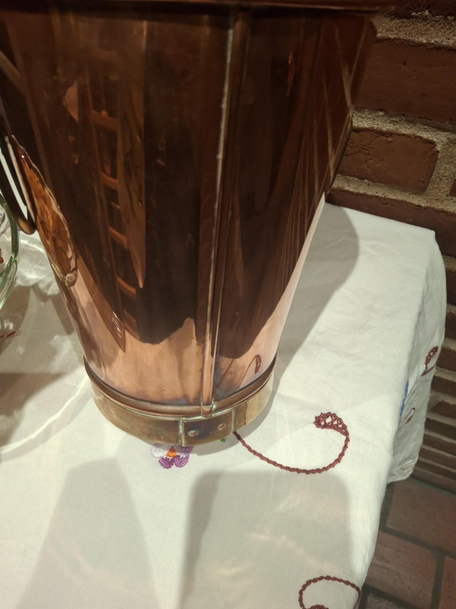 Vintage stand med synlige, fine brugsspor/patina på kobberet (se billeder) – intet der ødelægger helheden, tværtimod: det giver den karakter.