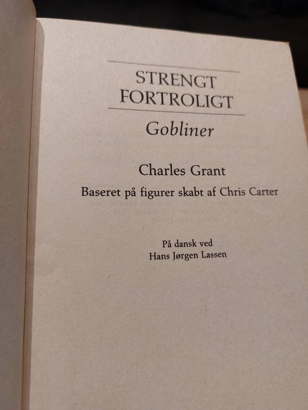 Åh, tænk engang, hvem husker ikke den nervepirrende stemning fra X-Files? Med denne udgave af ‘Stregt Fortroligt: Goblins’ af Charles Grant kan du genopleve uhyggen og mysterierne, som kun Mulder og Scully kunne opklare. Bogen er fra Vintens Forlag A/S og udgivet i 1995, så den har en rigtig fin alder, der emmer af gode læsestunder.